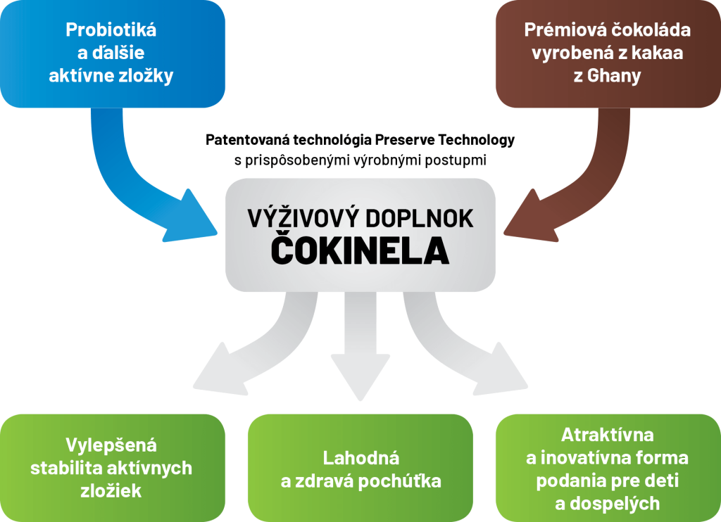Výrobky ČOKINELA sa vyrábajú pomocou patentovanej upravenej výrobnej technológie, Preserve Technology, vďaka ktorej sa uchováva vysoké percento aktívnych zložiek, dokonca aj tých, ktoré sú citlivé na teplo, pri zachovaní skvelej chuti skutočnej čokolády.
